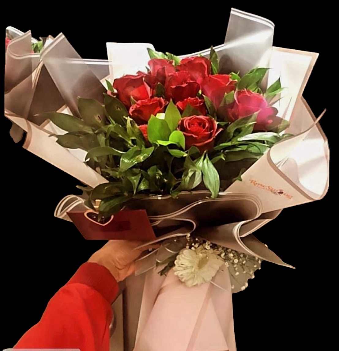 10 Gül ve yeşillikle harmanlanmış bir buket