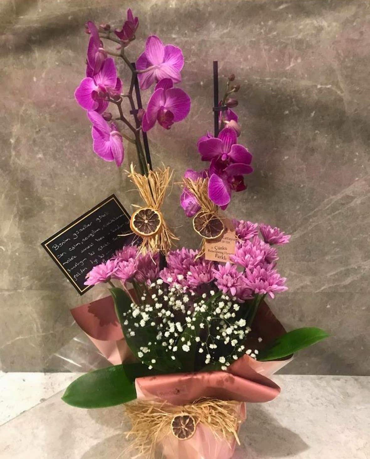 Çift Dallı Mor Orkide, Çiçeklerle Aranjmanlanmış