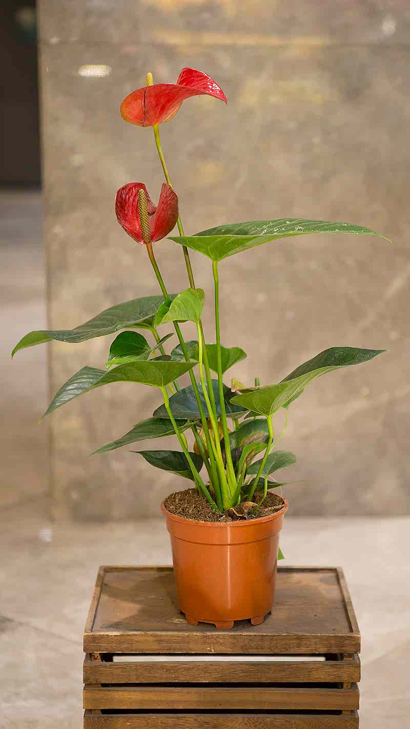 Flamingo çiçeği (Antoryum) 75 cm yükseklik, 50 ene sahiptir. Ürüne alttaki dekoratif kasalar dahil değildir. En çok satan çiçeklerimizden biridir. İş yeri tebriği, anneler günü, öğretmenler günü gibi özel günlerin favorisi olan bir çiçeğimizdir.