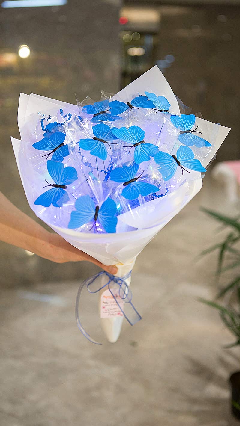 Bukette ortalama 15 adet kelebek, ışıklı aydınlatma bulunuyor. Çok satan ürünlerimizden bir tanesi.