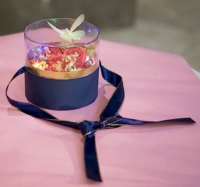 Kapalı kutulu kırmızı güller tasarımında 7 adet kırmızı gül, kuru cipso çiçekleri, kapaklı mika kutu, altın yaldızlar, kurdela, kelebek, ışıklı aydınlatma bulunmaktadır. Yazdırmak istediğiniz notu ödeme öncesi siparış notları bölümüne yazınız.