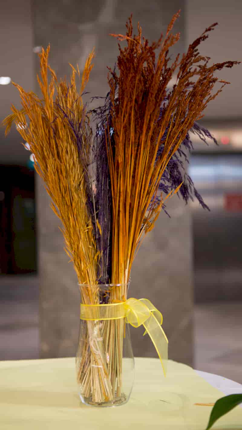 Kahverengi, pembe, mor renkli kuru bitki demeti. Ürüne cam vazo dahil değildir. Fiyat tek bir bağ için geçerlidir.