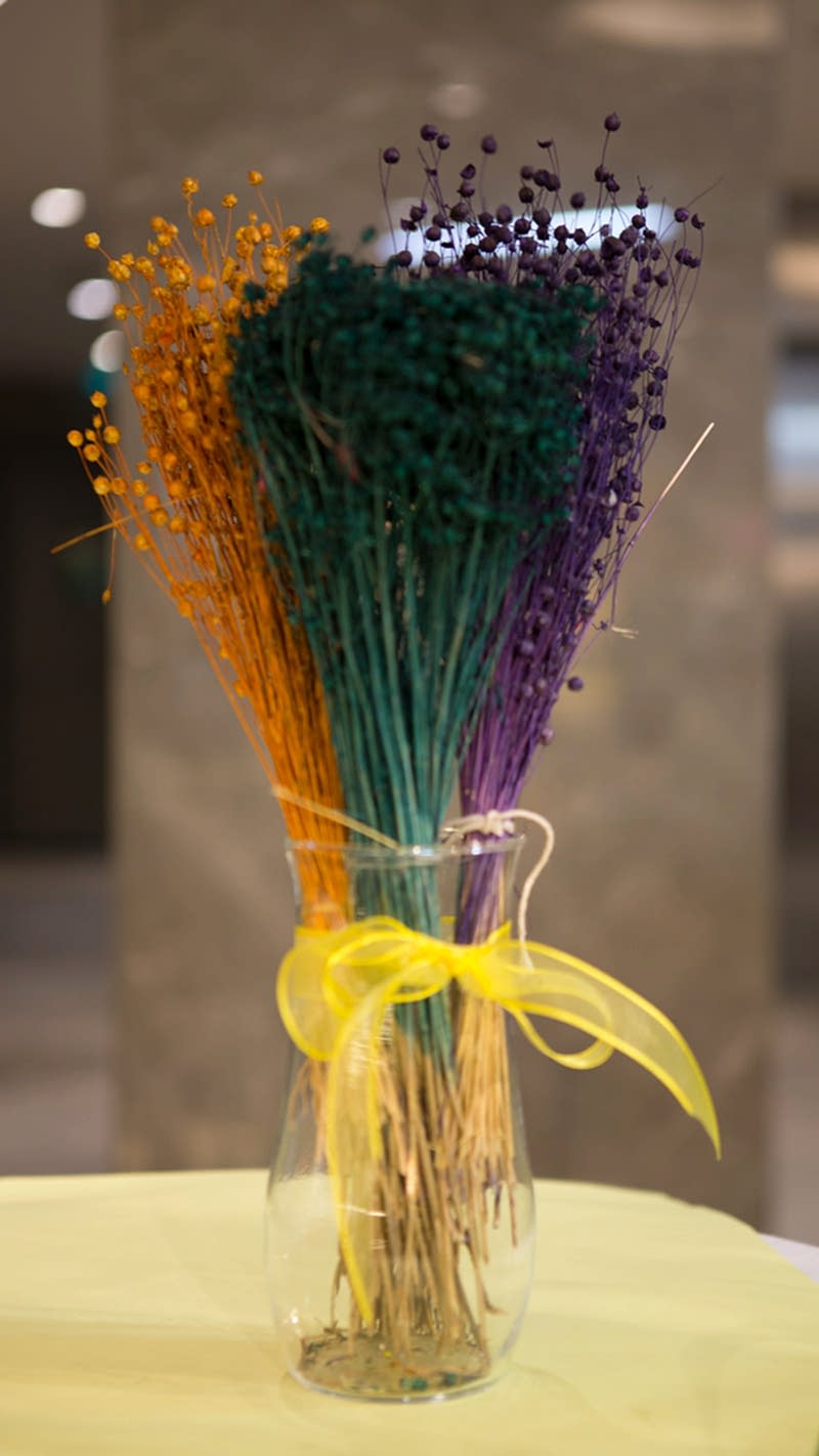 Mor, turuncu, yeşil renkli kuru bitki demeti. Ürüne cam vazo dahil değildir. Fiyat tek bir bağ için geçerlidir.