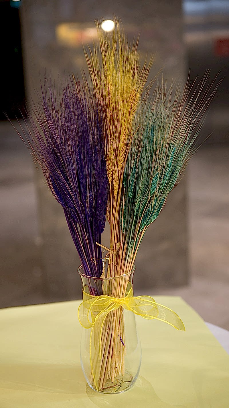 Lacivert, yeşil, sarı renkli kuru başak demeti. Ürüne cam vazo dahil değildir. Fiyat tek bir bağ için geçerlidir.