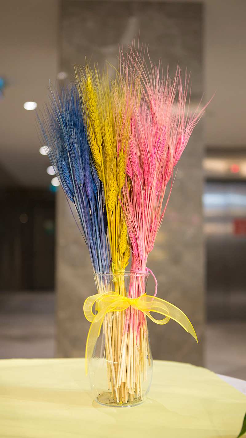 Mavi, pembe, sarı renkli kuru başak demeti. Ürüne cam vazo dahil değildir. Fiyat tek bir bağ için geçerlidir.