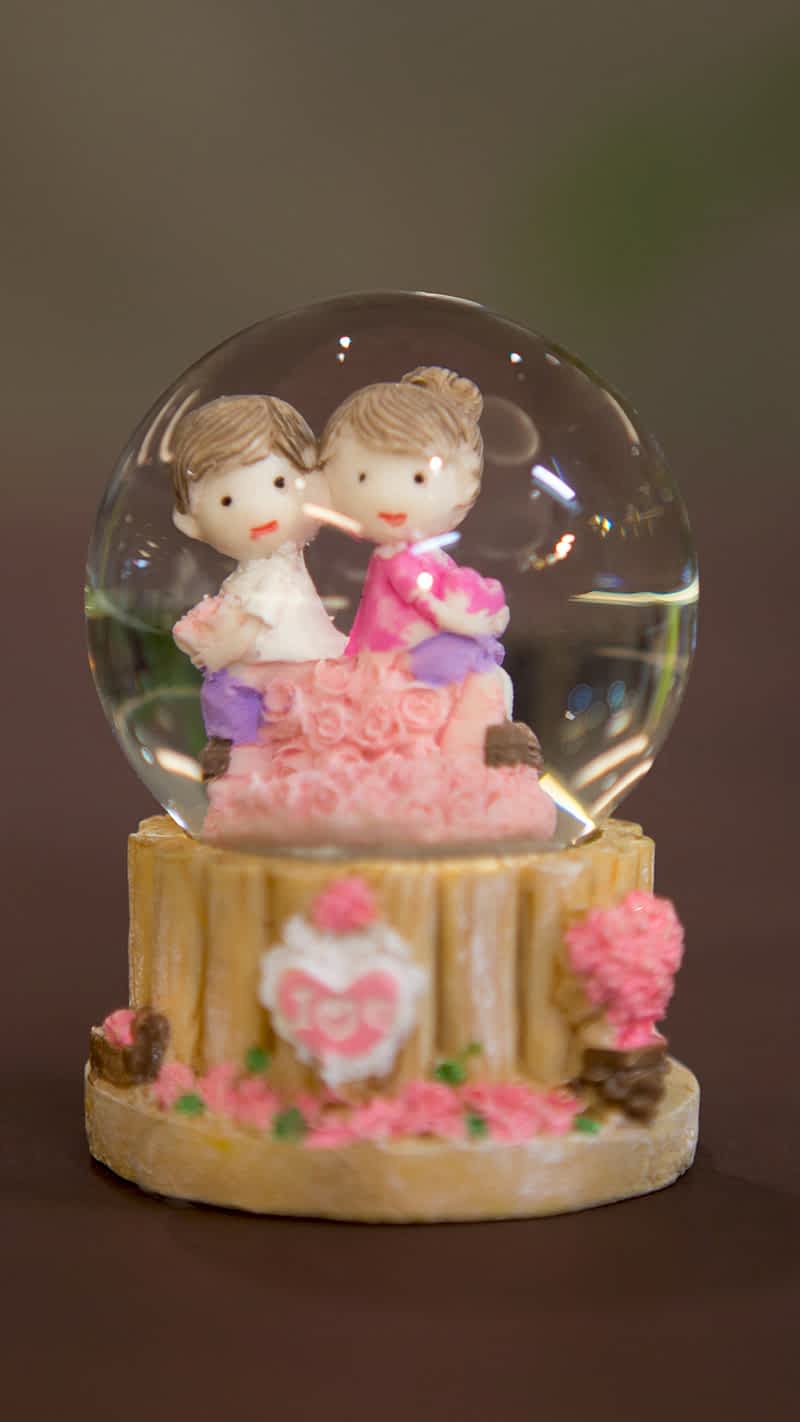 Sevgili çift kar küresi, üzerinde minik kalpler ve ı love you yazısı ile çok sevimli bir hediye.